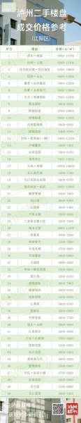 本榜单为二手房价格,每月月末整理推出;新房成交价格每月上旬或中旬推出:买房必备|10月泸州楼盘真实成交价格大全