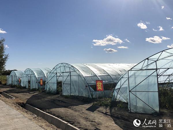 桦南镇北柳村一排排整齐的扶贫大棚。韩婷澎 摄