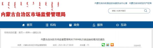 中国质量新闻网讯 8月27日,内蒙古自治区市场监督管理局网站发布关于894批次食品抽检情况的通告。通告称,近期,该局组织食品安全监督抽检,抽取茶叶及相关制品、水果制品、速冻食品、糖果制品、调味品、饮料等22大类食品894批次样品,其中检出22批次不合格样品。主要是食品添加剂超限量使用、农兽药残留超标、质量指标不达标、质量指标与标签标示值不符、微生物超标、重金属污染、有机物污染等问题。