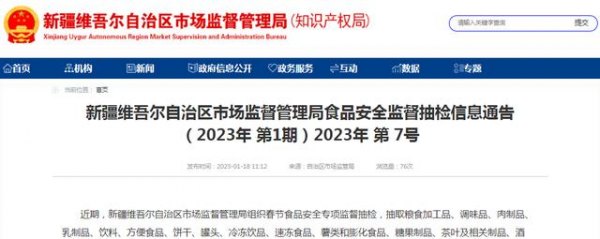 中国质量新闻网讯 近期,新疆维吾尔自治区市场监督管理局组织春节食品安全专项监督抽检,抽取27类食品650批次样品。其中,抽检酒类样品80批次,未检出不合格样品。