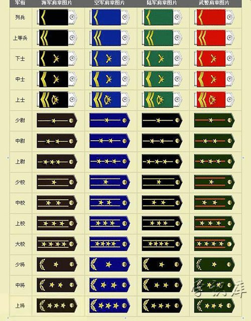 军衔等级排名,中国军衔等级肩章排列图片