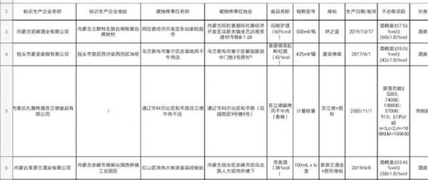 5月18日,内蒙古市场监督管理局发布了一期食品安全抽检结果,不合格样品中涉及4批次酒类产品。
