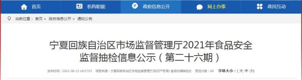 中国质量新闻网讯 近日,宁夏回族自治区市场监督管理厅公示2021年第二十六期食品安全监督抽检信息。本次抽检粮食加工品样品57批次,全部合格。