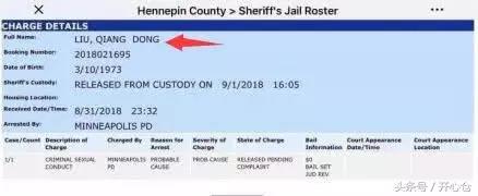 9月2日下午,京东创始人兼CEO刘强东的一张截图在中国互联网上流传开来,图片显示他因性侵女大学生被明尼苏达州当地警方逮捕。