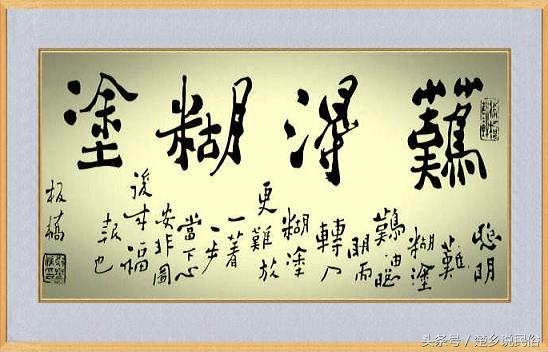 历史发展到今天,呈现出纷繁复杂、变幻万千的景象,在这样光怪陆离的大千世界里,很多人处在事业未竞的悲哀、爱情失败的痛苦、人际关系复杂的苦恼与管理头绪的混乱之中,世界虽未走到尽头,但失望、沮丧的情绪却笼罩了这个纷乱的世界,于是乎,“难得糊涂”的书法四海泛滥,糊涂的学问五洲尊奉。然而,对于糊涂学的阐释,正可谓百家争鸣、各有千秋。