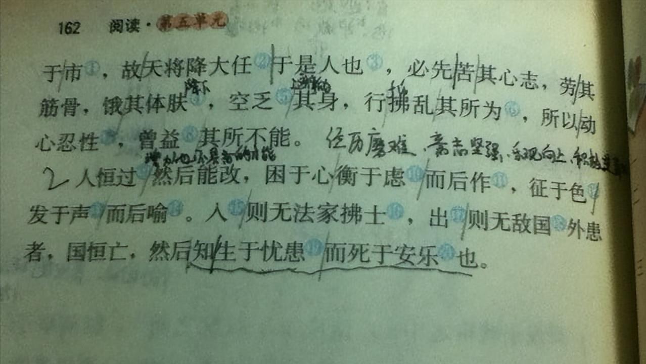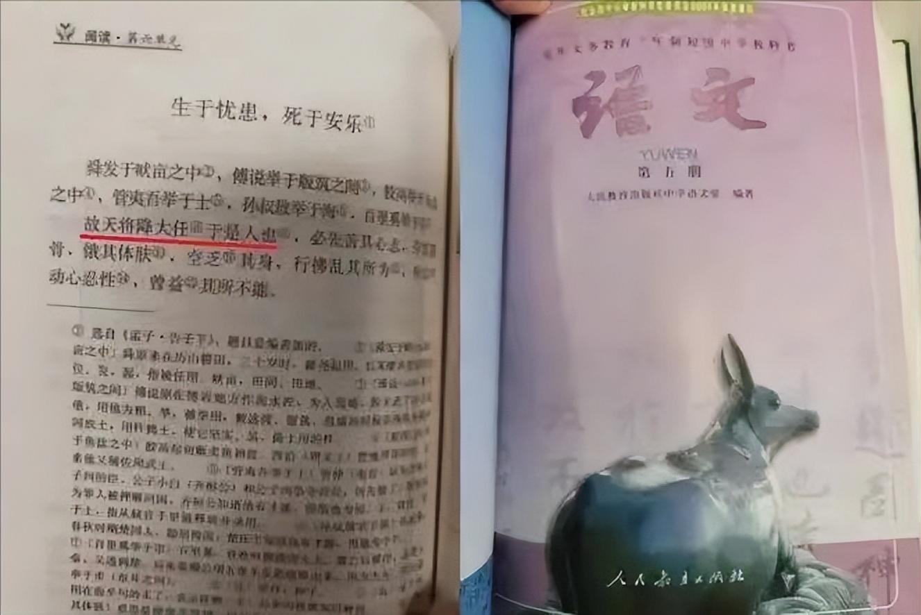 有网友查了1978、1982、1992、1994、2001、2006年各版本的语文教材,结果全都是“天将降大任于是人也”;四库全书刻本《孟子集注》(宋 朱熹 注)、明代刻本《孟子注疏解经》(汉 赵歧 注)均为“是人”。也就是说,我们的语文老师根本没教过我们“天将降大任于斯人也”!