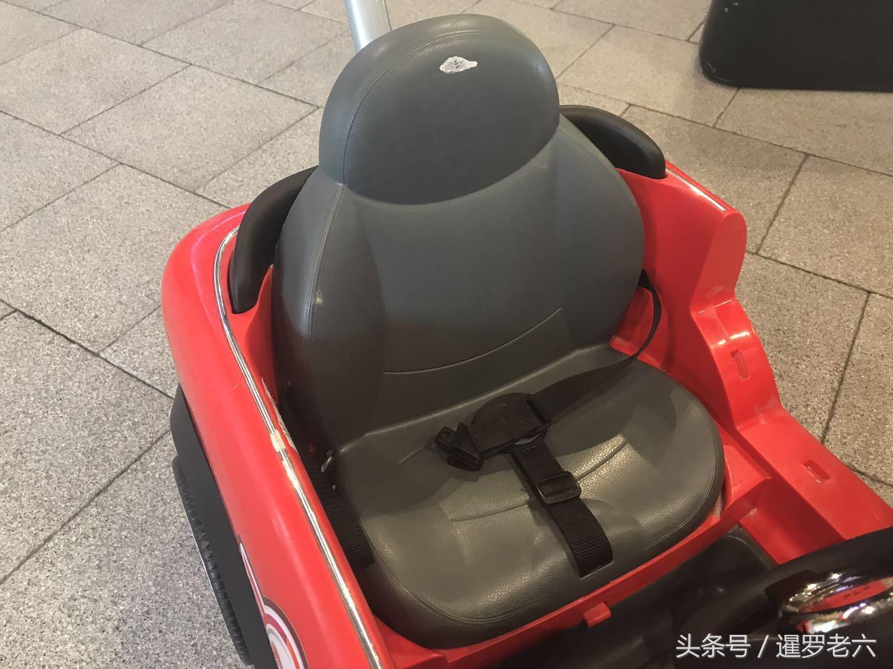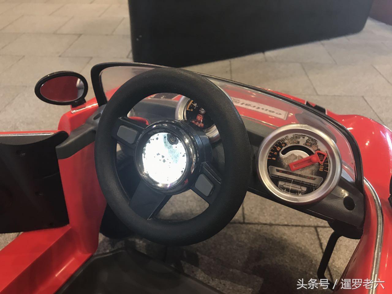 小车的方向盘也可以控制前轮的转向方向,两边还有反光镜、钥匙孔和仪表盘一应俱全,看着还挺像那么一回事儿,糊弄糊弄孩子绝对够用了!