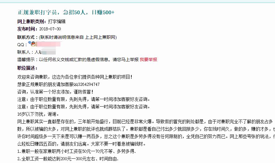 现在很多大学生或者上班族都想在闲暇时间做一些兼职挣点外快,而且现在互联网也是非常的方便,找兼职的话上网搜索一下兼职平台,或者是下载兼职app都是可以的,如果说没有“假工作”的话,我们是非常惬意的,找到兼职工作,挣到了额外收入,用句话来说就是“美滋滋”,可是,随着兼职平台的出现和越来越火,一部分网络骗子亦随之出现了,今天我就给大家风向一下我的经历!