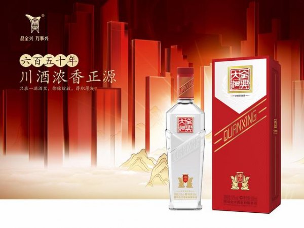 全兴最早可追溯到650年前。它源自元末明初巴蜀地区极负盛名的美酒——“锦江春”,以酒香醇甜、爽口尾净而远近闻名,畅销各地。“康乾盛世”51年(1786年),“琵琶身处旧藏春,井水留香不染尘”,“锦江春”变身福升全佳酿“薛涛酒”,门庭若市;1824年,成都老字号“福升全”更名“全兴成”。