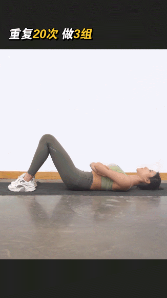 2、呼气卷腹,一次让臀部、腰部、背部离开地面。不要抬起过高,抬起时身体保持一条直线即可。3、再吸气,让背部、腰部、臀部落地。4、重复20次*3组。注意: