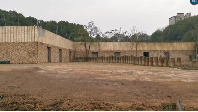 由于大象行为训练展示馆的表演区域周边均为假山体和封闭围挡遮住,记者随后绕行到表演区域背后的大象笼舍区域,笼舍前方还有一块用电子围栏围住的坪地,场地上有监控设施。经过与网传视频对比,这里就是大象踩踏事件的事发地。