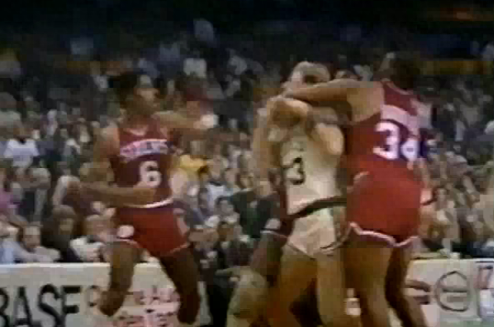 “大鸟”伯德是80年代垃圾话说的最多的球员,在一次凯尔特人与费城76人的比赛中,伯德每得一分就向对位的传奇巨星J博士欧文大吐垃圾话,终于导致了斗殴的出现。当时还是小卒一名的巴克利,直接上前助阵J博士,他扭住伯德令其毫无还手之力,J博士则趁机给了伯德脸上两拳,巴克利也因此迅速走红。