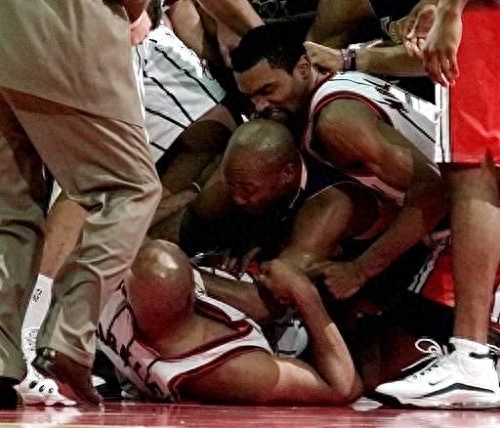 90年代的步行者,是公牛队在夺冠路上的强敌,米勒也是联盟里少有的敢挑战飞人的球员之一。在一次遭遇战里,补篮成功的米勒顺势撞向乔丹,被彻底激怒的乔丹选择向米勒挥起了拳头,两人缠斗在一起,而自此之后,两人之间的恩怨就再也没有停止。