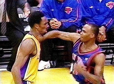 2000年湖人主场对阵尼克斯的一场常规赛中,科比与对方后卫克里斯-查尔斯发生冲突,后者直接走到科比面前,突然两记勾拳,打了科比一个措手不及。而这次斗殴,也让查尔斯名声大震,成功晋升NBA顶级铁血打手。