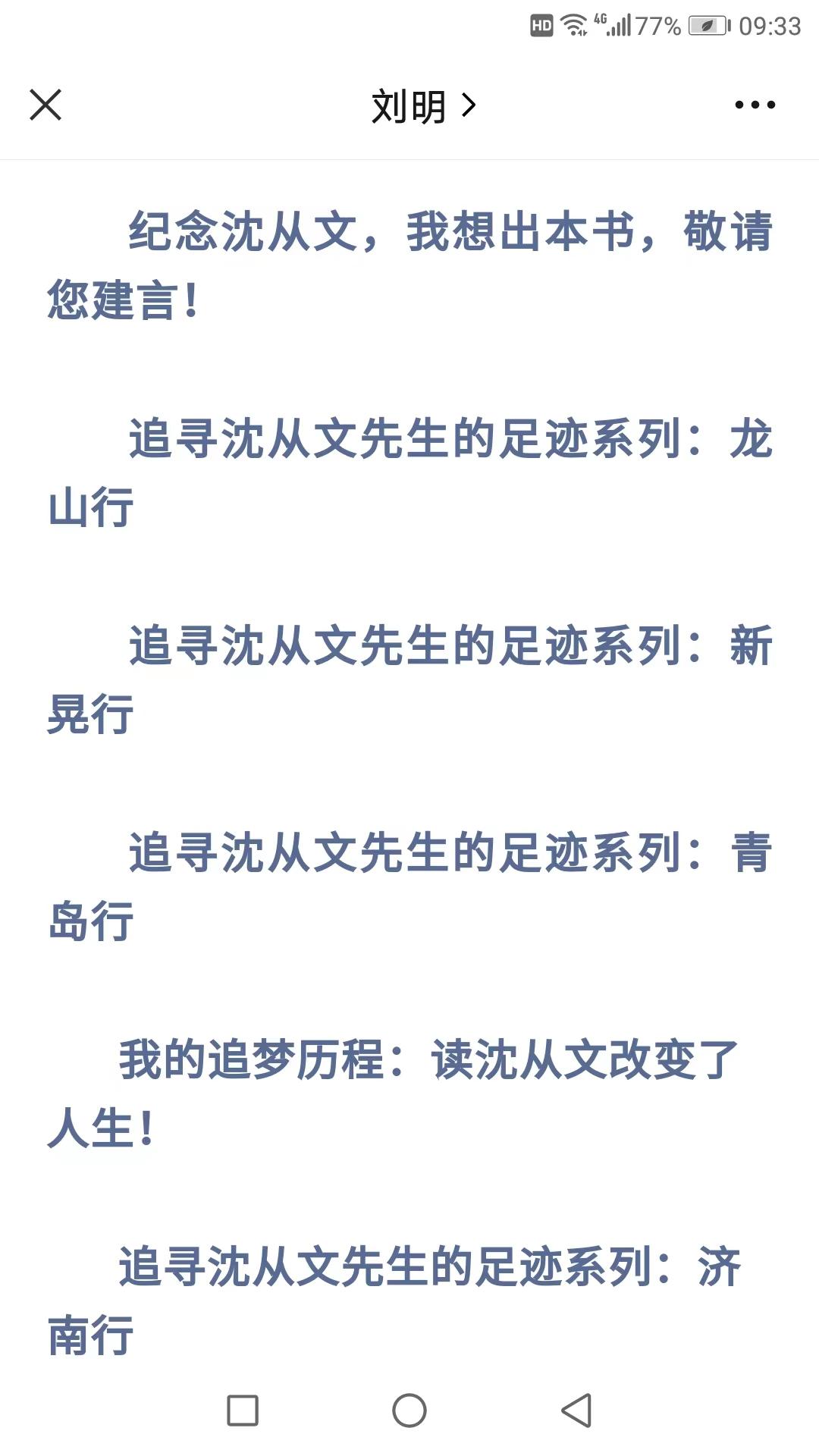 让人高兴的是,刘明最近要出书了。他在微信里说,“今年是沈从文先生诞辰120周年,为了纪念沈先生,我准备自费出本书。”也就是《追寻沈从文先生的足迹》系列图书。