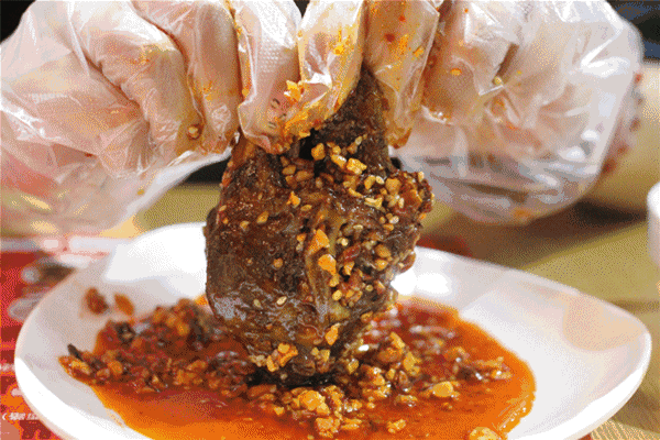 还有些外地人总想用筷子就把兔头啃了,这基本上是不可完成的任务。啃兔头不用手,不抿(吮)指拇儿,不吸脑花,就等于没有吃过兔头。