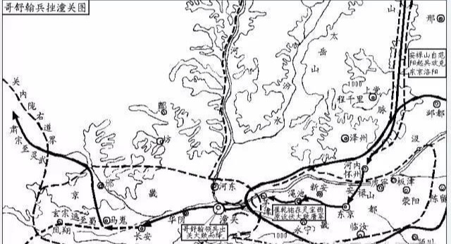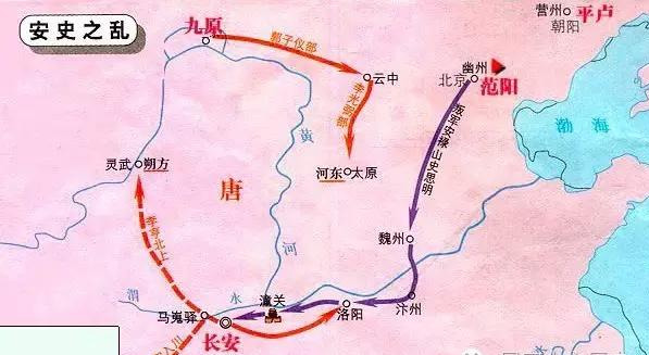 当时,哥舒翰率领10万大军镇守潼关,截断了安禄山西取长安的进攻路线;李光弼、郭子仪从河北率军南下,阻挡了安禄山退回范阳的撤退路线。官军四集对安禄山形成瓮中捉鳖的合围之势,安禄山起兵未几就陷入了“进无所攻,退失巢穴”的进退失据的困境。