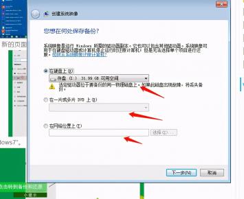 点击系统和安全下面的备份您的系统,选择储存磁盘的位置。根据自己的需求选择相应的备份内容,然后点下一步,最后保存设置运行即可。备份时,关掉杀毒软件。