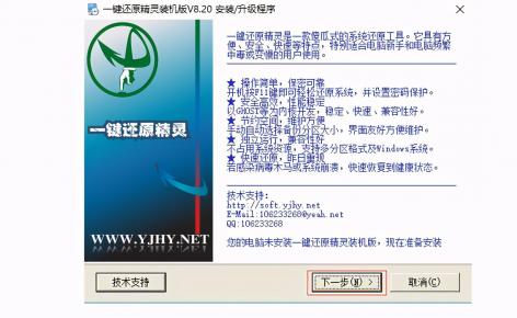 二、首先我们要百度一下【一键还原精灵软件】下载安装,自行百度下载。一键还原安装步骤如下,按图操作。