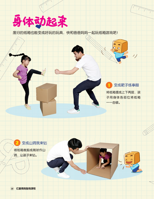 户外酷热难当,在家也可以带孩子动起来哦~只需要一个废旧的纸箱,就能玩出好多花样呢,快来试试吧!
