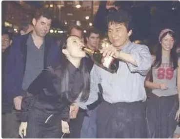 卓伟用手里的照相机拍下了章子怡用嘴接香槟喝,成龙将她横抱起来的画面!
