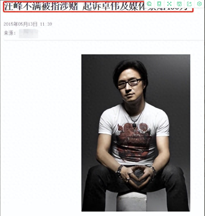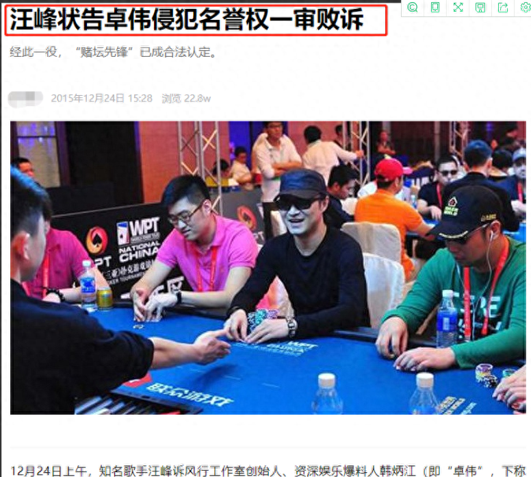 卓伟曾经报道汪峰“涉赌”。气不过的汪峰直接一纸诉状将卓伟告上了法庭,并要求他赔偿自己精神损失400万元!