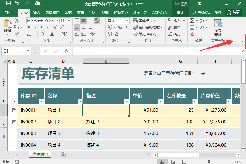 有时候想要尽可能地缩小表格页面大小,可以隐藏功能区,这样就可以更多地显示表格内容。