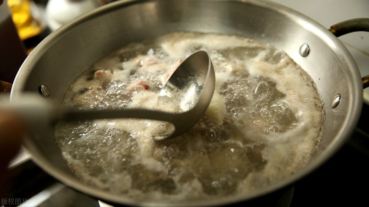而汤汁呈现乳白色的一个重要因素,就是蛋白质和脂肪的浓度;特别是脂肪,通常脂肪含量越丰富,汤汁越容易熬煮成乳白色。