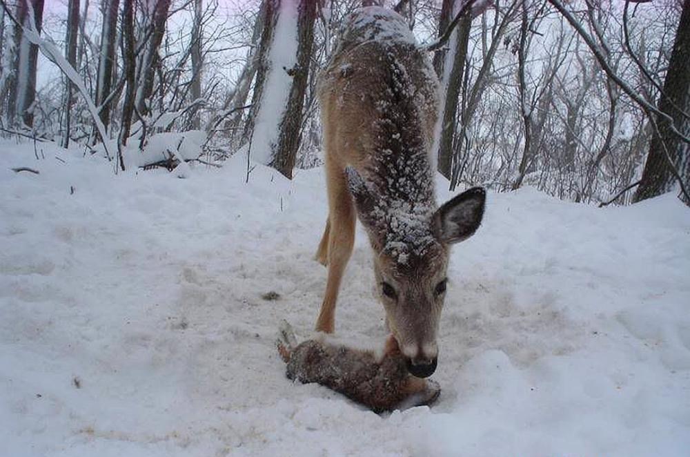 其实食草动物吃肉的情况很普遍,比如牛吃蛇、鹿吃兔、大象吃鱼等等,我们所认为的素食动物,几乎没有单纯的素食者。有专家认为,很有可能是由于它们体内缺少盐分或者某种矿物质导致的“异食癖”。