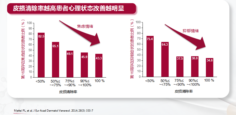 研究发现,皮损清除率越高,患者的焦虑、抑郁情绪也会随之下降。