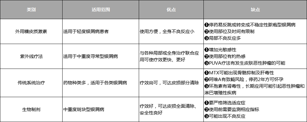 中重度寻常型银屑病、红皮病型银屑病:先用外用药治疗,如果效果不理想,综合权衡利弊后,可选用生物制剂治疗。