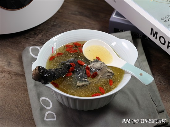 做法:乌鸡用开水焯烫后,红枣、虫草花、清水炖制1-2小时,上桌时加入枸杞子。