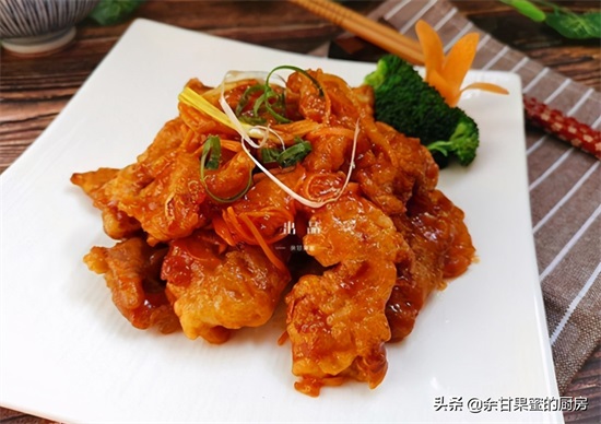 做法:1、将里脊肉放冰箱冷冻1-2小时,里脊肉变硬,但又能切得动,两边放上筷子,里脊肉切成十字花刀;2、将里脊肉用姜葱水腌制后,放到面粉中,均匀沾上面粉,抖去多余的面粉,入锅炸制出锅;3、锅中制作糖醋汁(料酒1汤匙、生抽2汤匙、糖3汤匙、香醋4汤匙、水5汤匙)和水淀粉,加入少许番茄酱,食用油,拌匀后淋在里脊肉上,上桌。