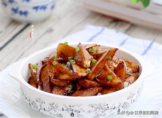做法:茭白切成滚刀块,锅中入油,加入葱段炒香,加入茭白翻炒至变软,加入老抽酱油,海鲜酱、少许糖,清水焖一焖,最后加入精盐调味出锅。
