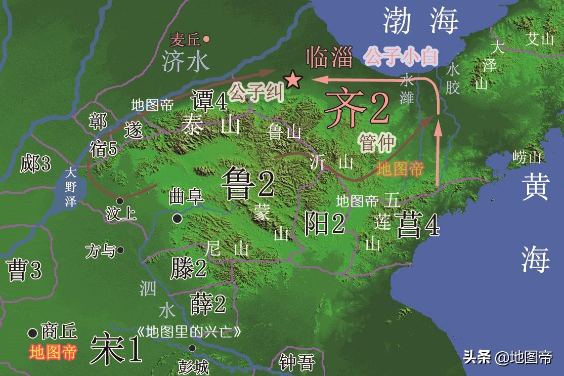 在宋元之前,山东的核心城市并不是济南。山东自古被称为齐鲁大地,主要是因为春秋时期山东一带的两个大国齐国和鲁国,两国主要以泰山山脉为界,齐在北,鲁在南。齐国都城在临淄(山东省淄博市临淄区),鲁国都城在曲阜。从最初两国的级别来说,齐国是侯爵,鲁国是公爵,按公侯伯子男,鲁国级别比齐国要高。鲁国后来被楚国灭掉后,山东主要就是齐国一枝独大了,国都临淄自然是区域核心城市,而济南则以“历下”之名,默默地面对临淄的高光时刻。对齐国来说,它面临的威胁主要来自西面,历下(济南)位于临淄以西,地理位置非常险要,自然而然地成了齐都临淄的西大门。