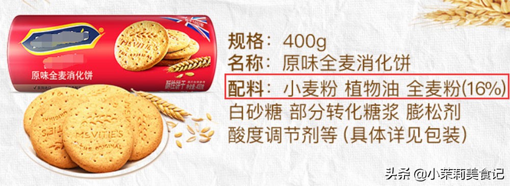 与全麦面包类似,如今市面上还有各种粗粮饼干,杂粮饼干,谷物饼干等,真正的粗粮饼干中含有较高的纤维,可以增加饱腹感。而且真正的粗粮饼干口感是比较差的,吃起来会比较粗糙,甚至会有些剌嗓子。但是市面上的一些粗粮饼干,粗粮成分比较低,而且往往会加入较多的糖分和油脂,来改善口感和风味,这样的“假”粗粮饼干,实际上热量非常高,想要通过吃这种饼干减肥就太难了。