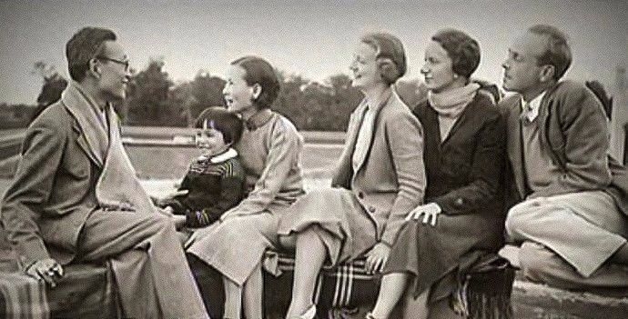 金岳霖(左一)、梁再冰、林徽因(左三)