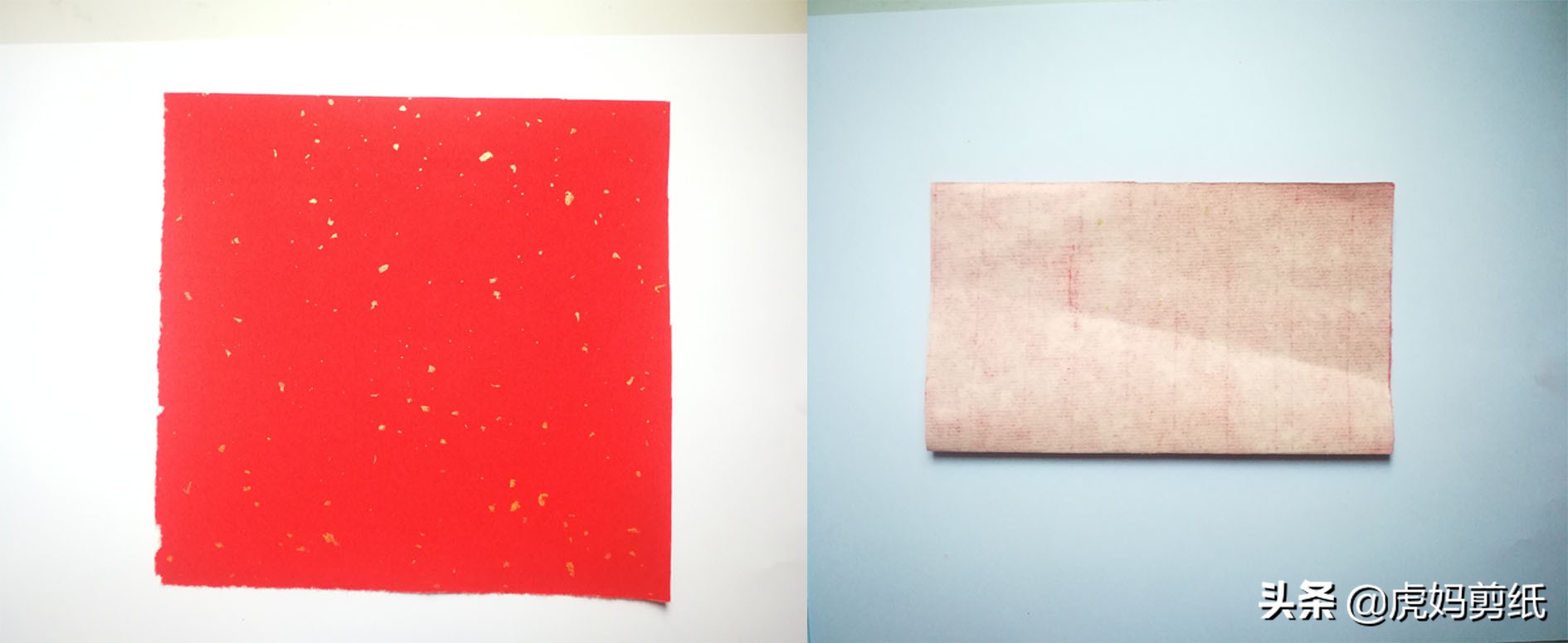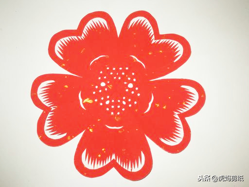 这是最后一个了,换了一张比较薄没有金点点的红宣。虎妈认为八瓣花朵是最漂亮的。