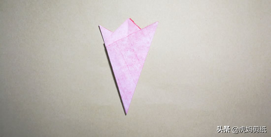 最后完成,注意边角重合,步骤有点多,小伙伴们多看几遍。这个是八种剪纸折法里面最难的一种,也是很常用的一种折法。没事了剪剪窗花什么的,学了之后你发现很简单哦~