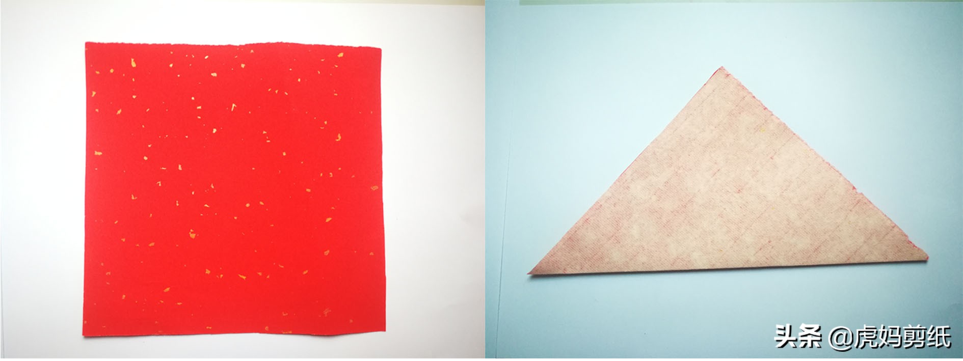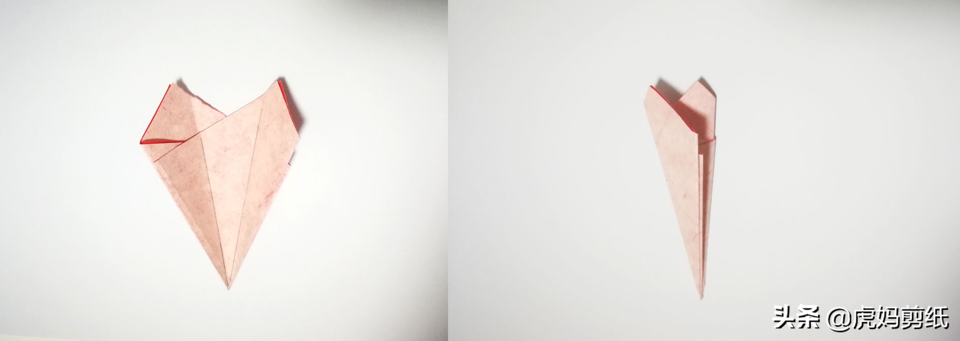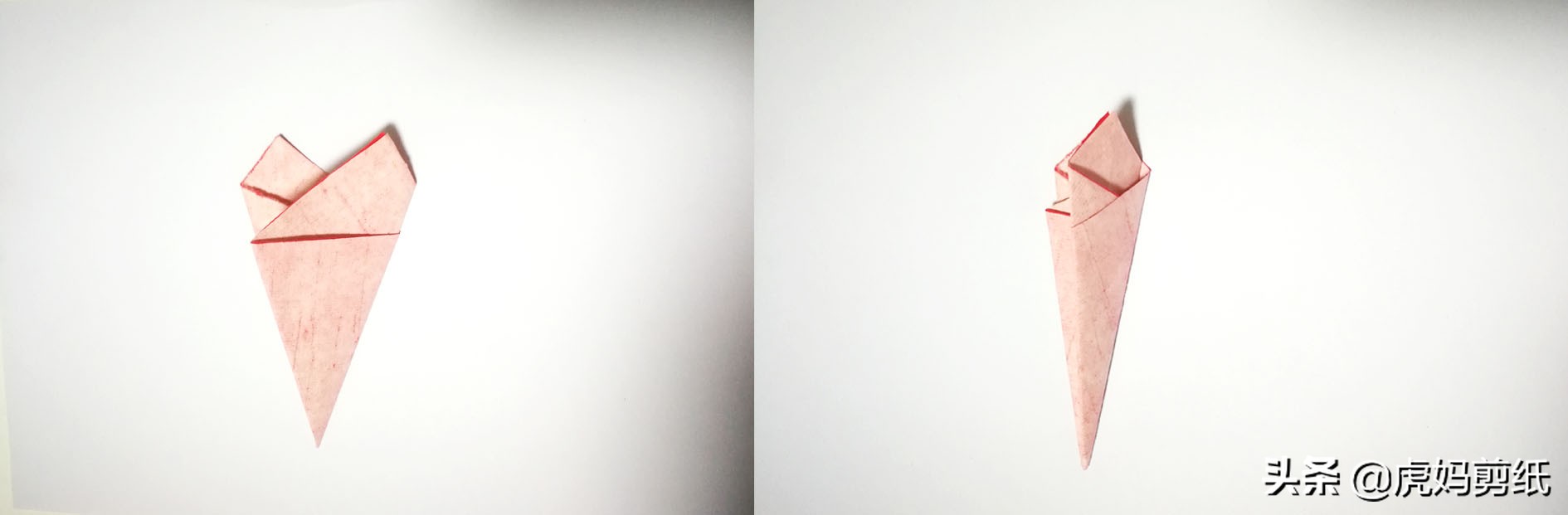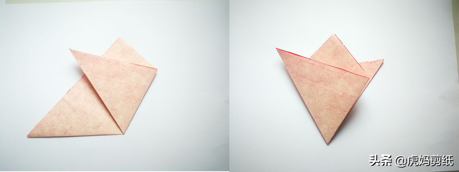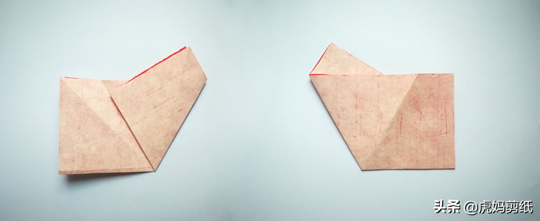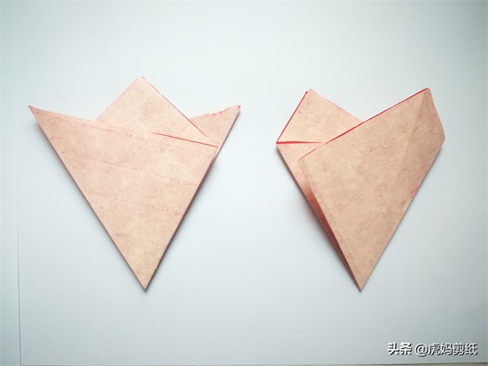 这次是对角线对折,两者除了折法没有任何不同。
