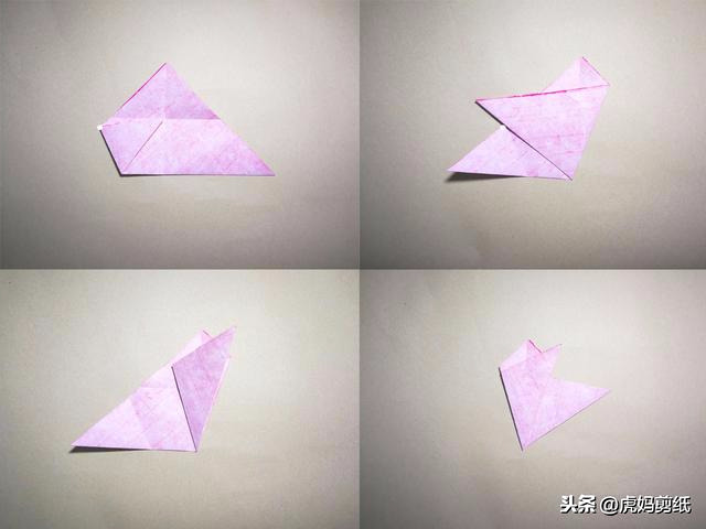折叠完成后三个角是重叠在一起的,三折折纸完成图。
