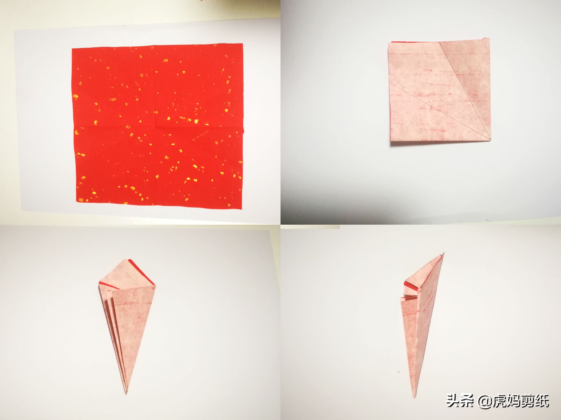 今天我们来讲一下三折四折等八种折叠对称剪纸折法和简单的团花剪纸,虎妈尽力把教程做到简洁明了,大家一看就懂。之前简单看了下大家的反馈,发现多数人都比较喜欢图文讲解,以后会慢慢调整。