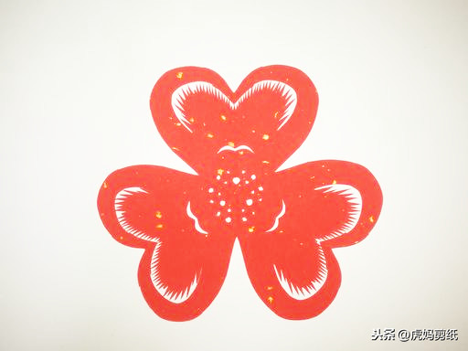 接下来跟着虎妈一起剪一个简单三折窗花图案。