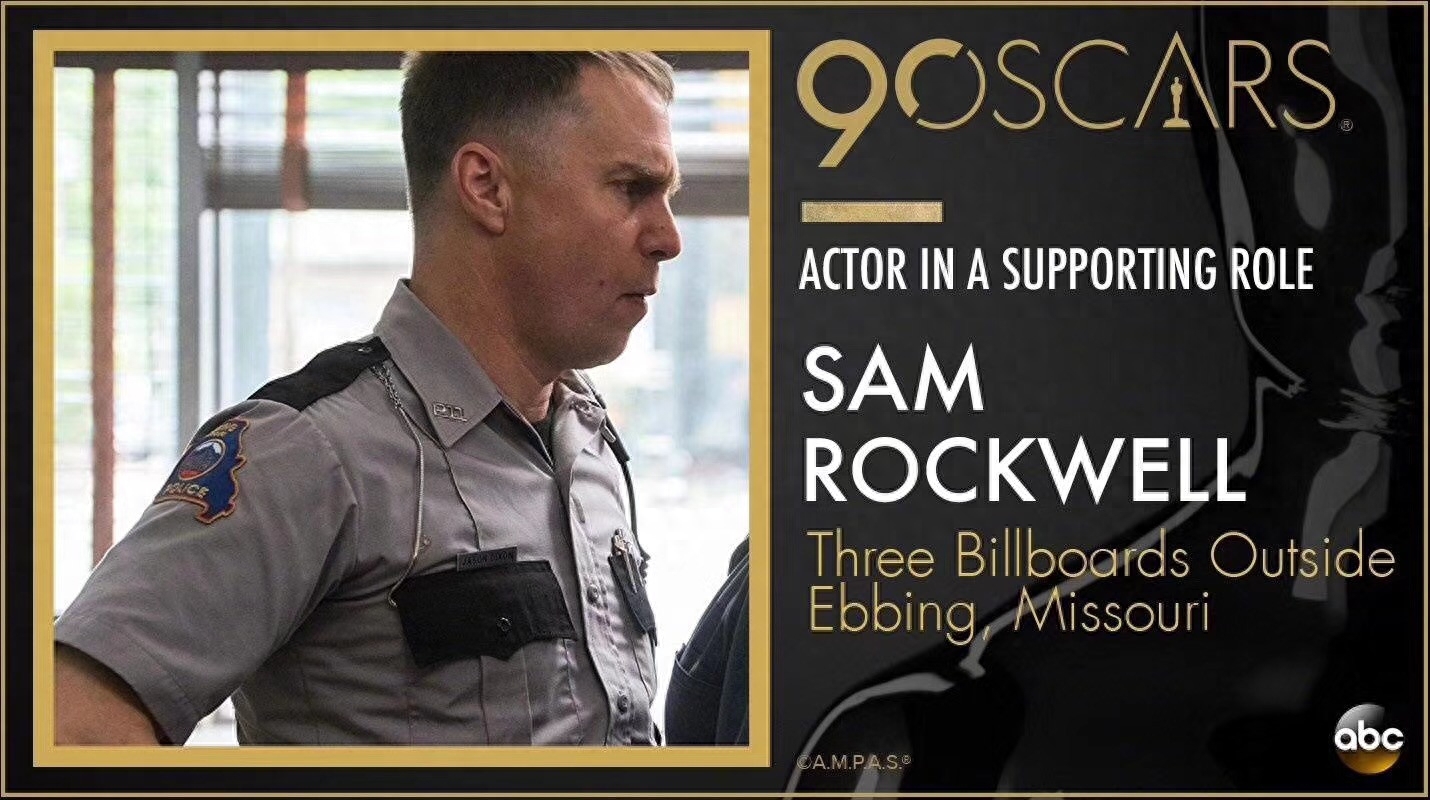 最佳男配角:山姆·洛克威尔《三块广告牌》,他此前已凭该角色横扫评论家选择奖、金球奖、演员工会奖、英国电影学院奖四大风向标,这是洛克威尔第一次奥斯卡提名,第一座奥斯卡奖杯。