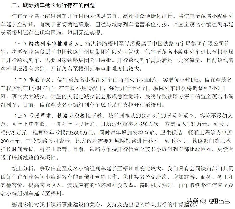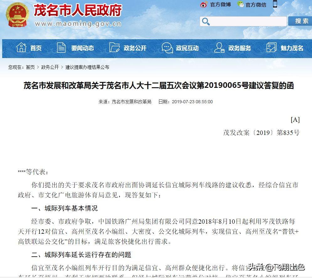 此前曾有人向茂名市发改委提出:将信宜至茂名短途城际列车延长至梧州。