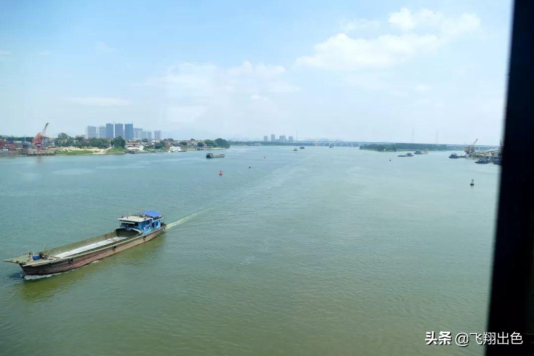 列车通过马房大桥跨越北江,这里是肇庆市下辖的四会市的境内。