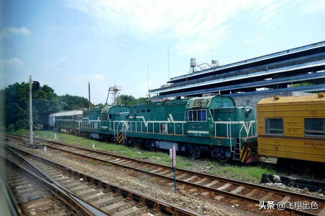有时候,窗外总会不经意地看到亮点。当列车通过广州机务段三水车间(原三水机务段)时,这里藏着一堆内燃机,如GK机车,以及DF4CK内燃机车。
