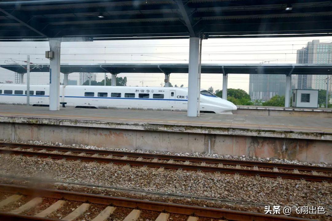 列车通过盐步附近,该区间是南广线、贵广线与广茂线并行,开往南宁、昆明、贵阳、重庆西等动车组匆匆而过,这些线路的开通使广东至西南省份的距离更近,时间更短。与此同时,广茂线却日薄西山。