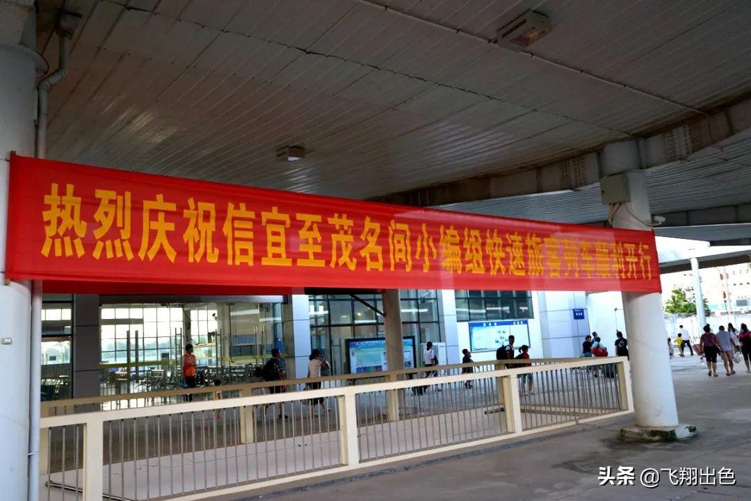 2018年的时候,信宜站内仍挂着庆祝城际车开通的横幅。