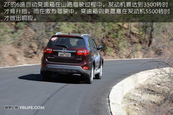 同时,这台来自ZF的6速手自一体变速器并不乐于升挡,而是要等到发动机3500转左右才肯换挡。在激烈驾驶中,变速箱则更愿意在发动机5500转时做出反应。要知道,5500转已经到达了发动机红转区域。虽然,全新驭胜配备了S挡,但驾驶感受并未发生明显变化。另外,驭胜S350使用的是机械液压助力转向系统。在山路驾驶过程之中,虽然这套液压助力转向的手感算不上清晰,但能确保这辆重心较高的全领域SUV快速并安全的通过每一个弯角。